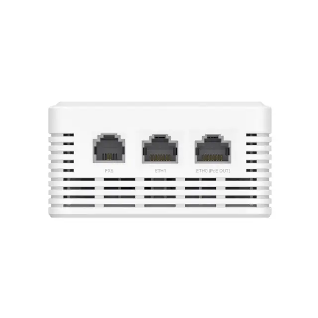 EAP625GP-Wall omogoča, da optično povezavo pripeljete naravnost v sobo ali pisarno, brez dodatnih ONT škatel ali razmetanih kablov. Vgrajeni GPON port sprejme optični signal iz obstoječe infrastrukture in ga v prostoru pretvori v celovit nabor storitev: hitro internetno povezavo, stabilen Wi-Fi 6, VoIP telefonijo in žično omrežje. Rezultat je čista, profesionalna in izjemno učinkovita rešitev, ki močno poenostavi omrežno zasnovo v hotelih, apartmajih in poslovnih objektih.