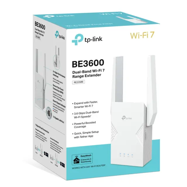 TP-LINK RE225BE BE3600 Wi-Fi7 Gigabit ojačevalec extender