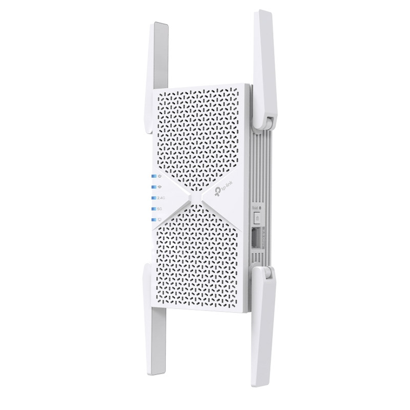 RE405BE razširi signal obstoječega usmerjevalnika in odpravi mrtve kote v prostorih, kjer je bil Wi-Fi prej šibek ali nedosegljiv. Štiri zunanje antene poskrbijo za široko in stabilno pokritost, zato lahko brez prekinitev uporabljaš internet v vsakem delu doma ali pisarne. Za naprave, ki zahtevajo najvišjo možno stabilnost, je na voljo 2.5-gigabitni Ethernet port, ki omogoča izjemno hitro žično povezavo s pametnimi televizorji, rač unalniki ali igralnimi konzolami.
