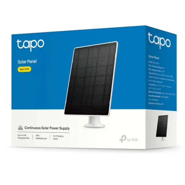 Tapo A202 je zasnovan kot idealna rešitev za vse, ki želijo svojo Tapo baterijsko kamero napajati brez skrbi in brez potrebe po pogostem polnjenju. S pomočjo visokoučinkovitih monokristalnih solarnih celic zagotavlja do 4,5 W solarnega polnjenja, kar omogoča stabilno in dolgotrajno delovanje kamer skozi vse leto.