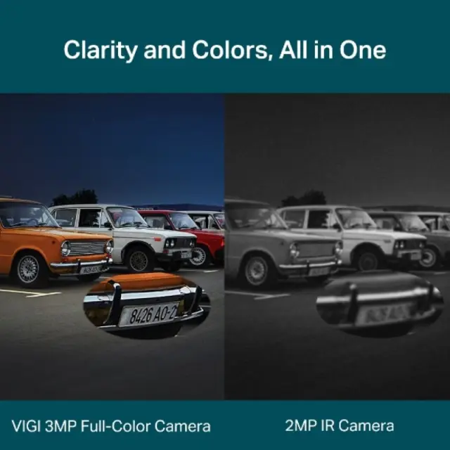 24-urna polna barva: pridobite 24-urne barvne podrobnosti, tudi v temnih pogojih, z lečo z veliko zaslonko, visoko občutljivim senzorjem in priloženimi dodatnimi lučmi.