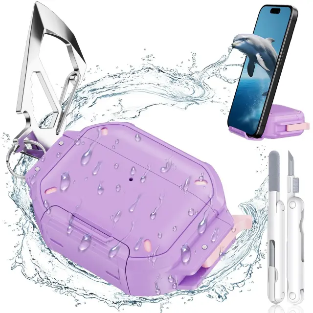 TPU Zaščitno Ohišje s Čistilnim Peresom Združljivo z Apple AirPods Pro 3 Purple