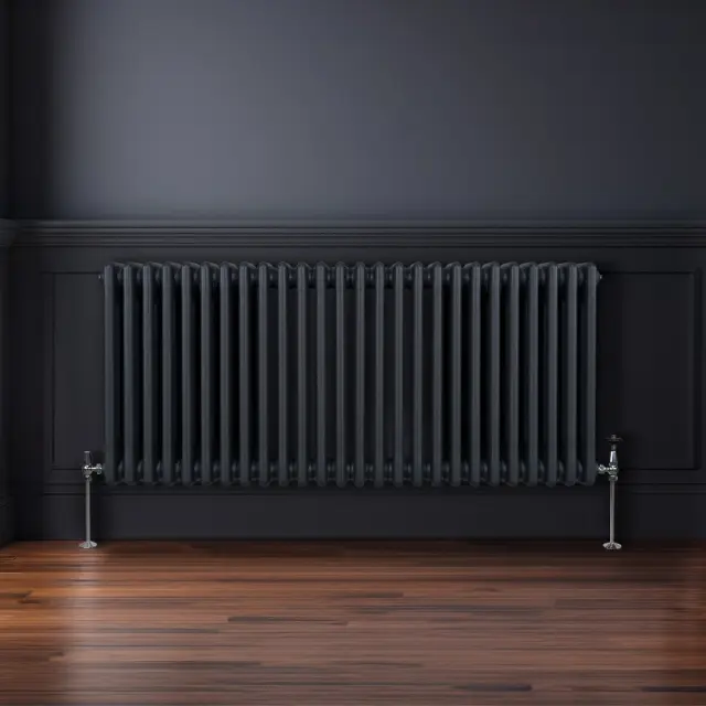 Vnesite toplino v svoj dom z našim vrhunskim 3-stebrnim horizontalnim radiatorjem v tradicionalnem slogu v antracitno sivi barvi – popolna mešanica brezčasne elegance in sodobne učinkovitosti.