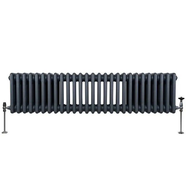 Vnesite toplino v svoj dom z našim vrhunskim 3-stebrnim horizontalnim radiatorjem v tradicionalnem slogu v antracitno sivi barvi – popolna mešanica brezčasne elegance in sodobne učinkovitosti.