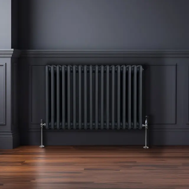 Vnesite toplino v svoj dom z našim vrhunskim 3-stebrnim horizontalnim radiatorjem v tradicionalnem slogu v antracitno sivi barvi – popolna mešanica brezčasne elegance in sodobne učinkovitosti.