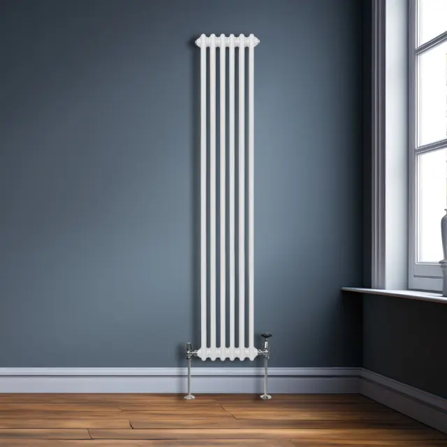 Vnesite toplino v svoj dom z našim vrhunskim dvostebrnim navpičnim radiatorjem v beli barvi v tradicionalnem slogu – popolna mešanica brezčasne elegance in sodobne učinkovitosti.