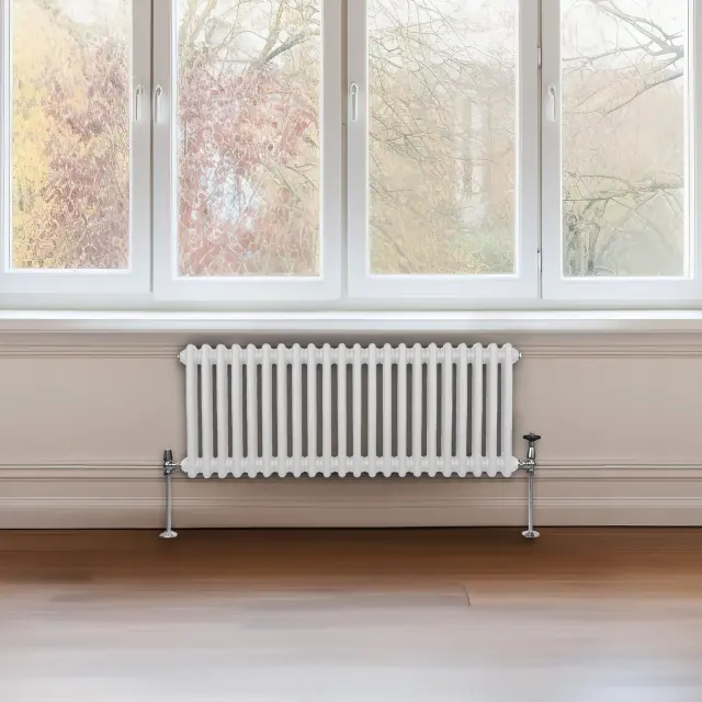 Vnesite toplino v svoj dom z našim vrhunskim tradicionalnim dvostebrnim vodoravnim radiatorjem v beli barvi – popolna mešanica brezčasne elegance in sodobne učinkovitosti.