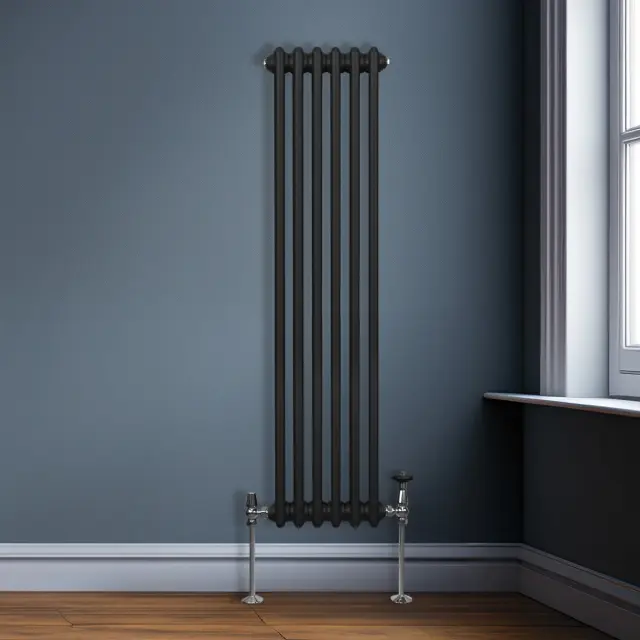 Vnesite toplino v svoj dom z našim vrhunskim dvostebrnim navpičnim radiatorjem v črni barvi v tradicionalnem slogu – popolna mešanica brezčasne elegance in sodobne učinkovitosti.