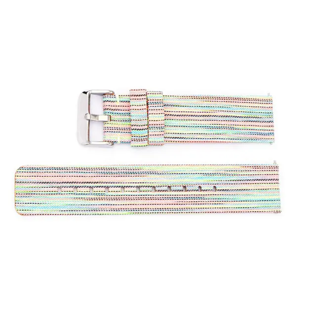 Eleganten in živahen: Izboljšajte svojo uro s tem privlačnim trakom iz mavričnega platna. Žive barve dodajo osebnost in živahnost vaši zapestju, zaradi česar je popoln dodatek za vsako priložnost. Edinstven dizajn zagotavlja, da boste izstopali iz množice in pokazali svoj individualni slog in okus. Ta trak je več kot le funkcionalen predmet; je modna izjava.