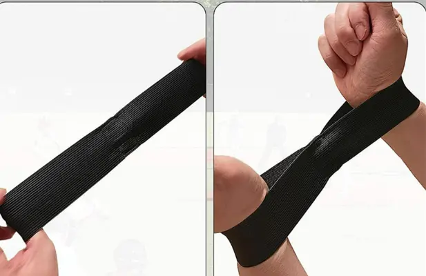 Enostavna uporaba: položite roke in komolce v korektivni elastični trak, da vzpostavite pravilno razdaljo med levim stopalom in desnim kolenom.