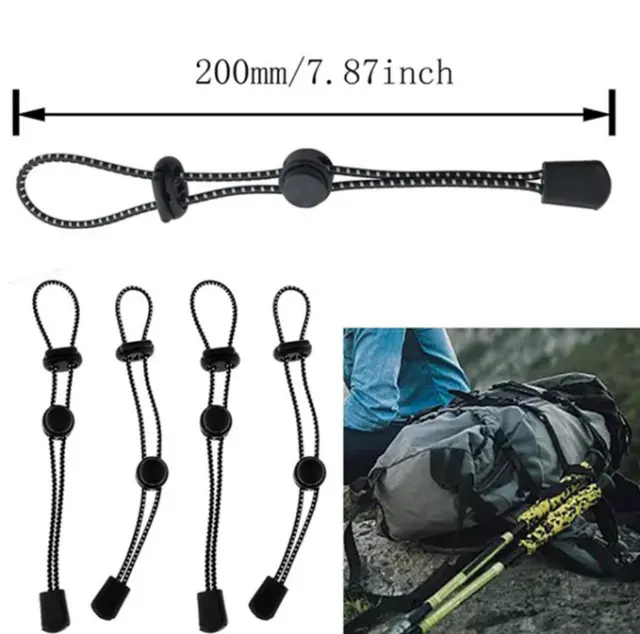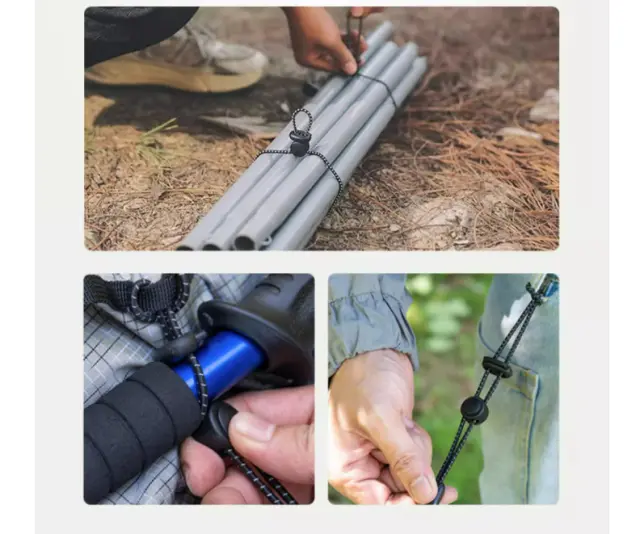 Močna elastičnost in varnost: Ta trak, izdelan iz visokokakovostnih elastičnih vrvi, zagotavlja, da bodo vaše pohodniške palice med vašimi pustolovščinami pritrjene. Zasnova z dvojno zaponko doda dodatno plast varnosti.