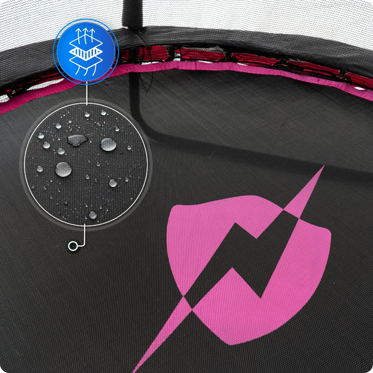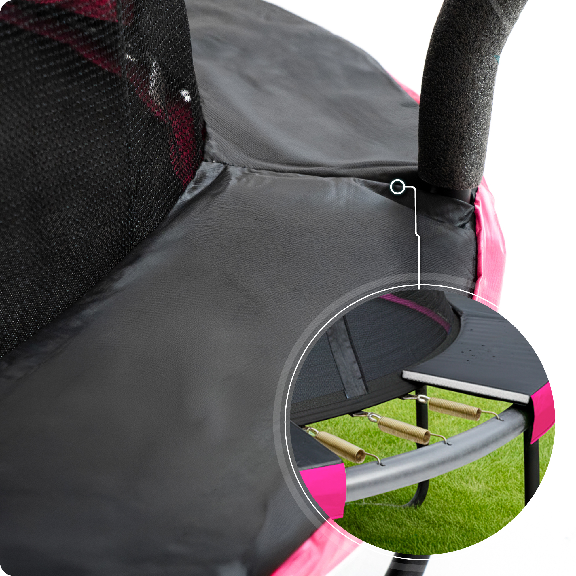 Zaradi trpežnih, kaljenih vzmeti trampolin ostaja elastičen in vzdržljiv tudi pri intenzivni uporabi.