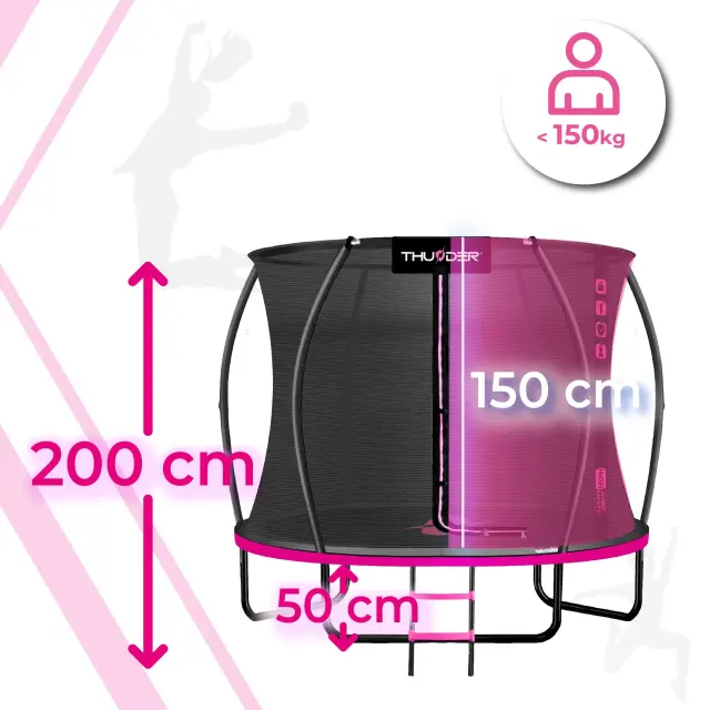 Vrtni trampolin THUNDER® ULTRA 6FT je zasnovan za varno rekreacijo otrok na prostem. Trdna konstrukcija, notranja zaščitna mreža in kakovostni materiali zagotavljajo stabilno in zanesljivo uporabo na vrtu ali dvorišču.