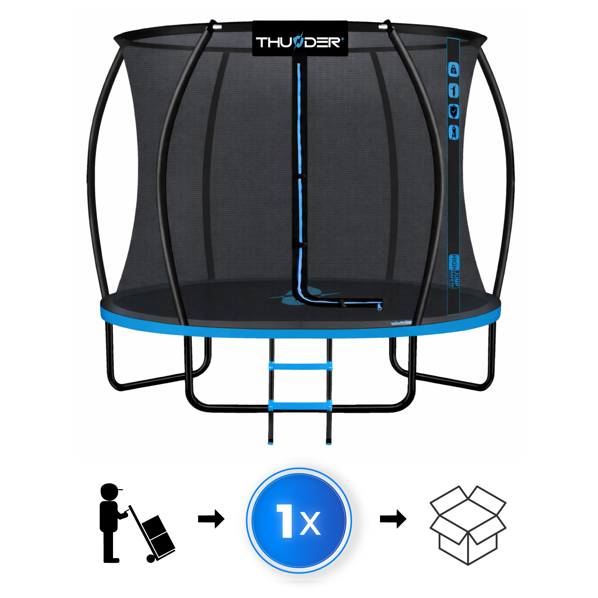 Močna vezava v trampolini THUNDER zagotavlja dolgo življenjsko dobo.