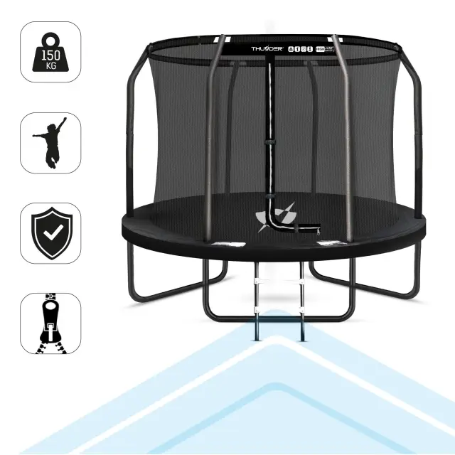 Trampolin vrtni THUNDER® ELITE 8FT omogoča varno in zabavno rekreacijo na prostem. Namenjen je večsezonski uporabi ter izdelan iz trpežnih in vremensko odpornih materialov, ki zagotavljajo stabilnost, dolgo življenjsko dobo in visoko raven varnosti.