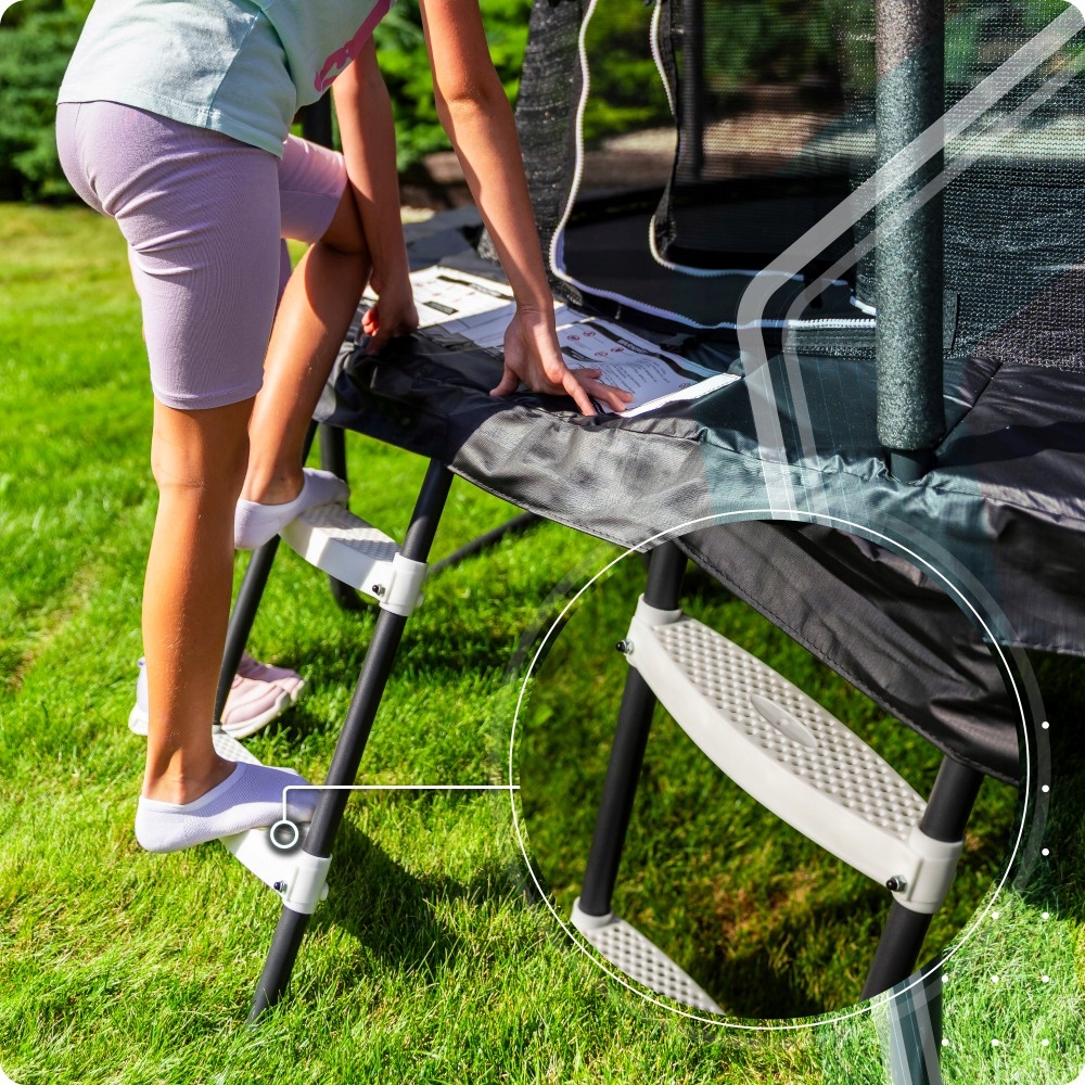 Veliko število vzmeti dodatno ojača konstrukcijo in poveča varnost ter stabilnost med skakanjem.