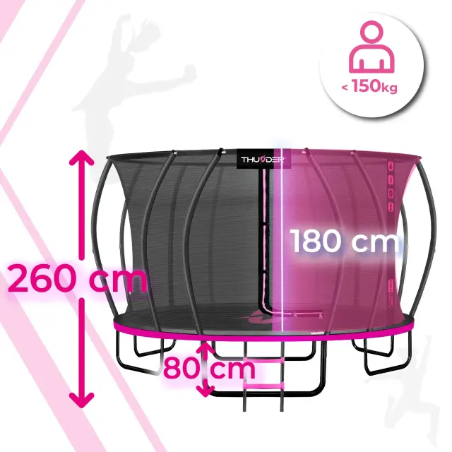 Trampolin vrtni – 488 cm, z notranjo varnostno mrežo, lestev, komplet THUNDER® ULTRA 16FT PINK
