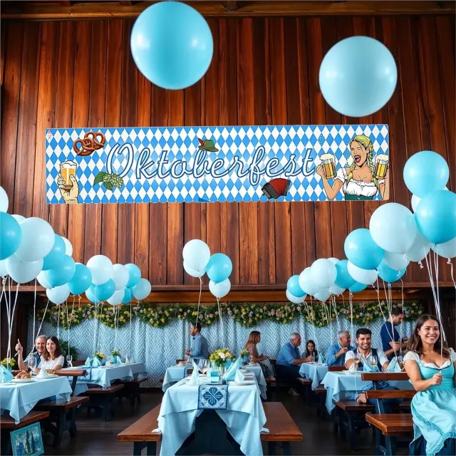 V svoj prostor vnesite pristno festivalsko vzdušje Oktoberfesta z velikim transparentom, ki meri 150 centimetrov v dolžino. Ta viseča dekoracija v prepoznavni modro-beli barvni shemi je zasnovana tako, da takoj pričara vzdušje bavarskih tradicij v poljubnem okolju. Izdelek je primeren za različna prizorišča, od domačih vrtov in teras do večjih pivskih šotorov ali gostinskih lokalov. Njegova uporaba je raznolika, saj ga lahko obesite med fasade stavb, na stene dvoran ali kot osrednji vizualni element nad vhodom v prireditveni prostor.