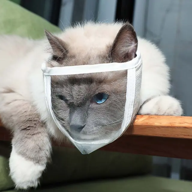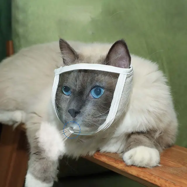 Transparentna mačja maska: proti ugrizom, praskam, nagobčnik za nego S