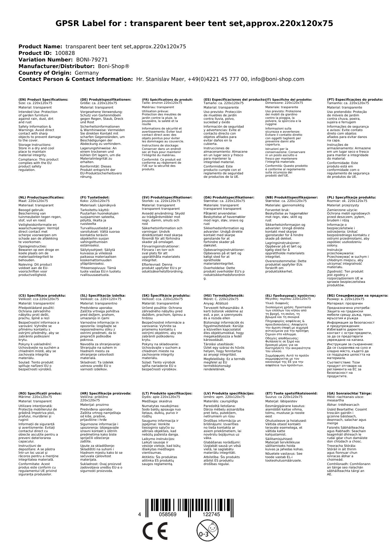 Transparentna prevleka za pivsko garnituro 220x120x75cm Vodoodporna, UV odporna in pralna zaščita