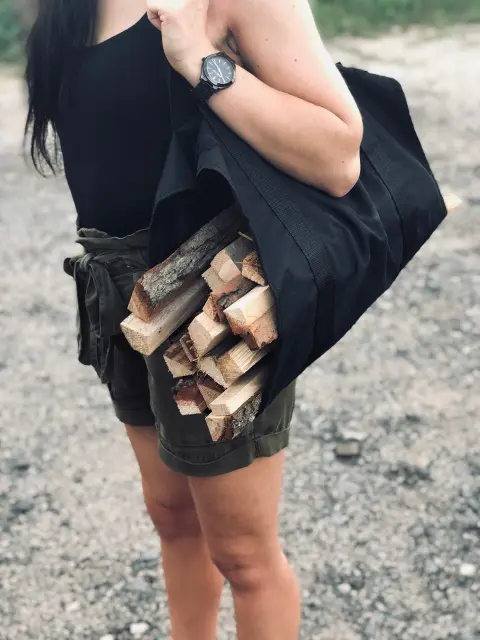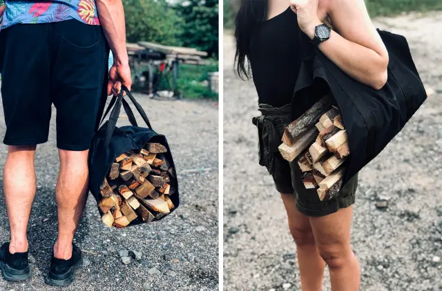 Izdelek ima odprto strukturo, ki omogoča prenašanje velike količine lesa katere koli velikosti. Vreča je sestavljena iz dveh ročajev, kar omogoča udoben transport lesa. Lahko jih primete v roke ali si jih nadenete na rame. Za večjo stabilnost pri premikanju več materiala lahko nosilec pritrdite z Velcro ; les se ne bo premikal, udobje prenašanja pa se bo zagotovo povečalo.