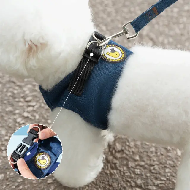 Udobna tkanina: Izdelano iz traper tkanine, ki je zračna, vpija znoj in je prijazna do kože, kar daje prednost udobju pri daljšem nošenju. Tkanina kot telovnik diha in ohranja psa hladnejšega med sprehodi ter zmanjšuje drgnjenje ali nastanek žuljev, kar je koristno pri pasmah s občutljivo dlako. Tekstura in prileganje nudita ravnovesje med mehkobo in strukturo za vsakodnevno urbano uporabo, igro in počitek.