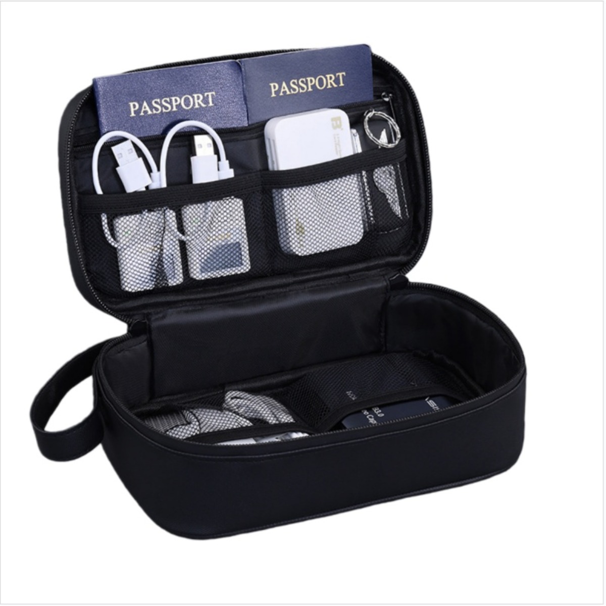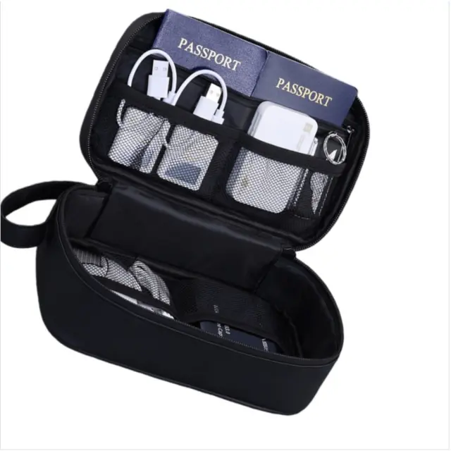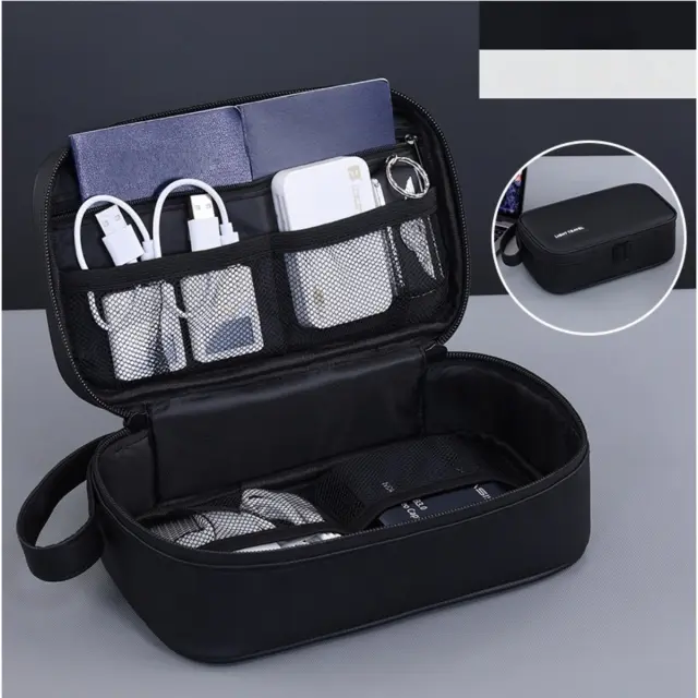 Kompaktna prenosnost: This travel electronics organizer pouch offers a slim, lightweight PU exterior and a wrist strap for easy carrying through airports or daily commutes. Designed for organized on-the-go use, it stores cables, power banks, phones, USB drives and headphones while maintaining a refined profile suitable for business travelers and professionals who value both form and function.