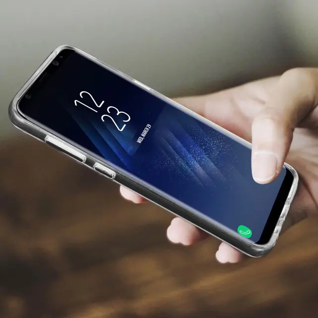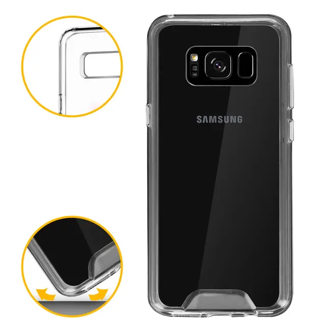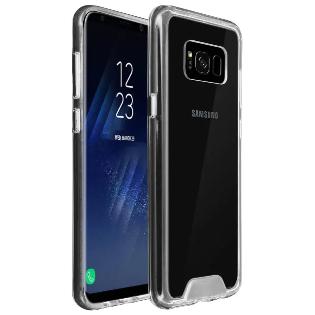 Zaščitna torbica Bi-material Crystal Collection zasnovana za Samsung Galaxy S8 plus. Zaščitite svoj pametni telefon s to izjemno prozorno trdno torbico iz polikarbonata. Njegov odbijač iz silikonskega gela ščiti vašo napravo pred padci. Učinkovita zaščita pred vsakodnevnimi udarci, padci in praskami.