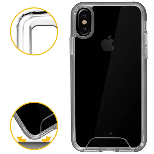 Zaščitna torbica Bi-material Crystal Collection zasnovana za Apple iPhone X, Apple iPhone XS. Zaščitite svoj pametni telefon s to izjemno prozorno trdno torbico iz polikarbonata. Njegov odbijač iz silikonskega gela ščiti vašo napravo pred padci. Učinkovita zaščita pred vsakodnevnimi udarci, padci in praskami.