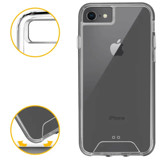 Zaščitna torbica Bi-material Crystal Collection zasnovana za Apple iPhone 6 , Apple iPhone 6S. Zaščitite svoj pametni telefon s to izjemno prozorno trdno torbico iz polikarbonata. Njegov odbijač iz silikonskega gela ščiti vašo napravo pred padci. Učinkovita zaščita pred vsakodnevnimi udarci, padci in praskami.