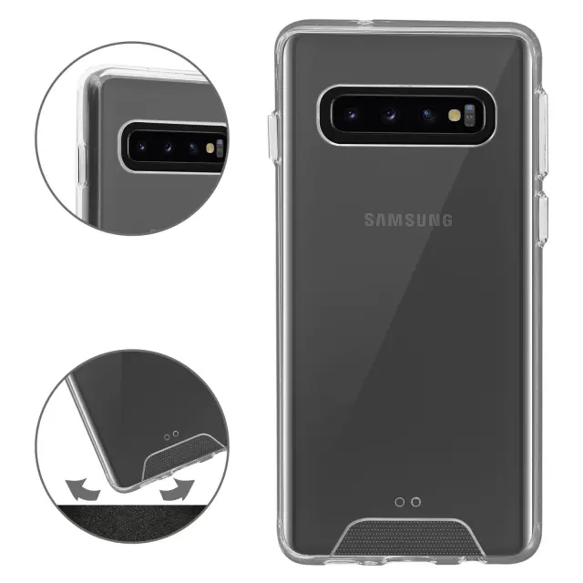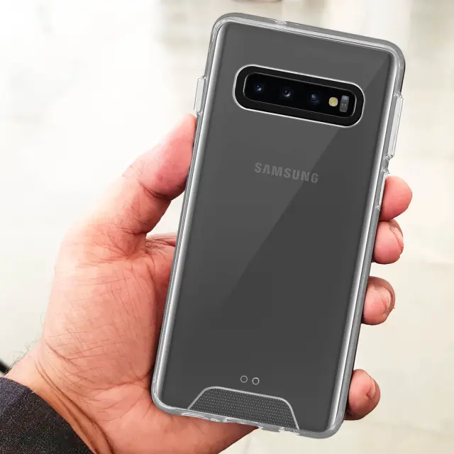 Zaščitna torbica Bi-material Crystal Collection zasnovana za Samsung Galaxy S10. Zaščitite svoj pametni telefon s to izjemno prozorno trdno torbico iz polikarbonata. Njegov odbijač iz silikonskega gela ščiti vašo napravo pred padci. Učinkovita zaščita pred vsakodnevnimi udarci, padci in praskami.