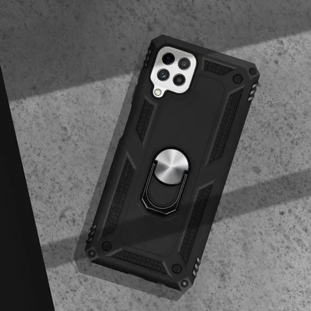 Trden ovitek iz dveh materialov za Samsung Galaxy A22 4G s podpornim obrocem - crn