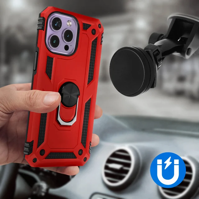 Trden ovitek iz dveh materialov za iPhone 14 Pro Max s podpornim obrocem - rdec