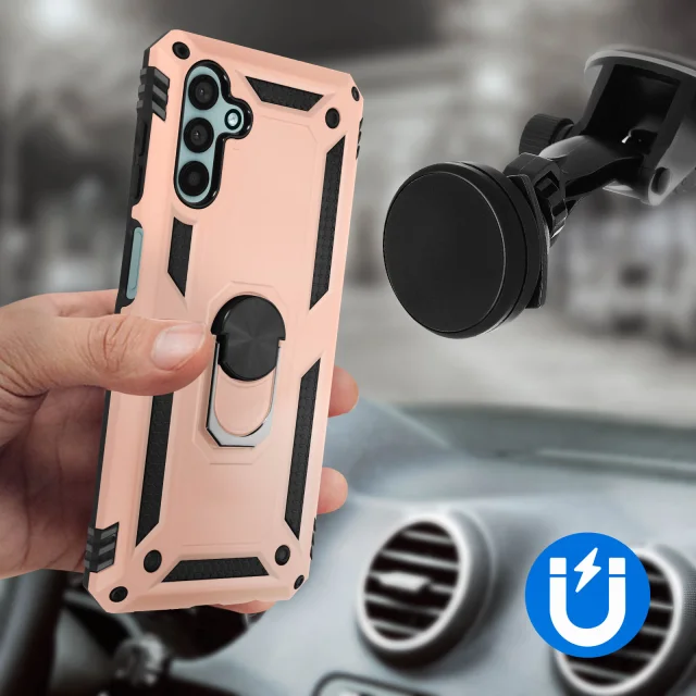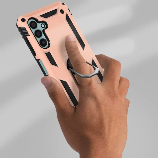 Trden ovitek iz dveh materialov za Samsung Galaxy A13 5G in A04s s podpornim obrocem - roza