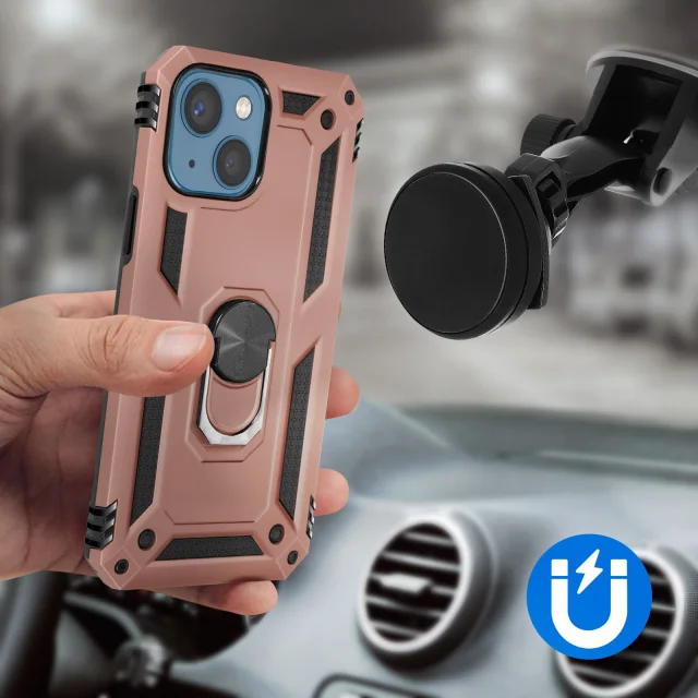 Trden ovitek za iPhone 13 iz dveh materialov s podpornim obrocem - rožnato zlato