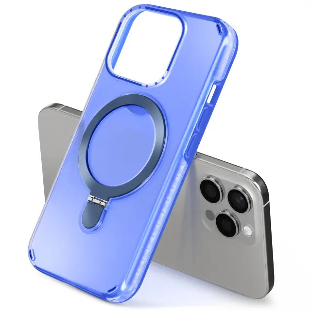 Trdo ohišje MagSafe za iPhone 15 Pro Max z zložljivim stojalom, Modra