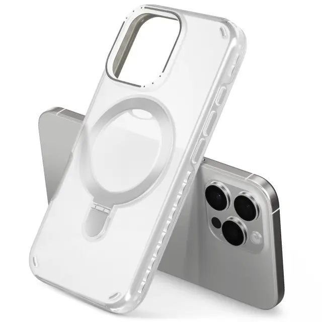 Trdo ohišje MagSafe za iPhone 16 Pro Max z zložljivim stojalom, Bela