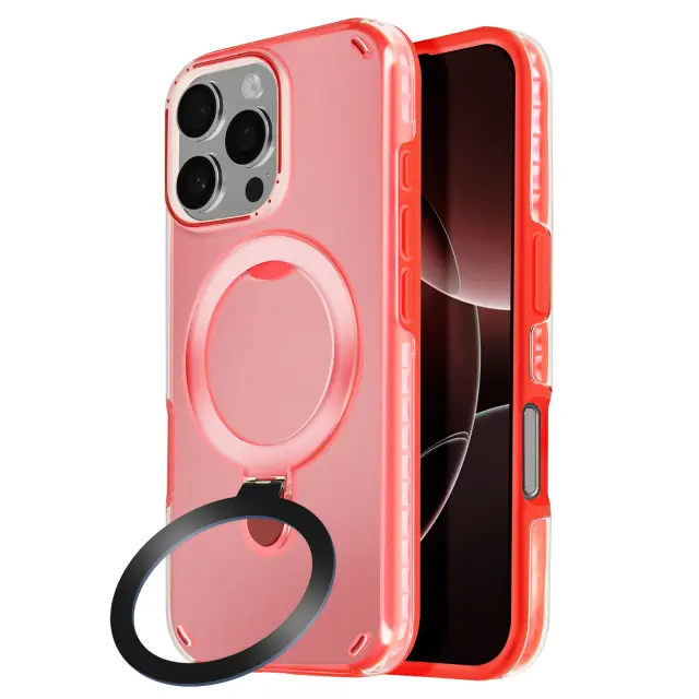 Trdo ohišje MagSafe za iPhone 16 Pro Max z zložljivim stojalom, Rdeča