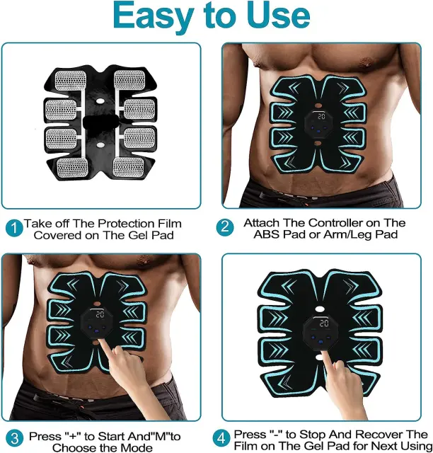 Učinkovita mišična stimulacija: Ta EMS trenažer za trebušne mišice uporablja električno mišično stimulacijo (EMS) za učinkovito krčenje in sprostitev trebušnih mišic, simulacijo vadbe ter spodbujanje krepitve in tonusa mišic.