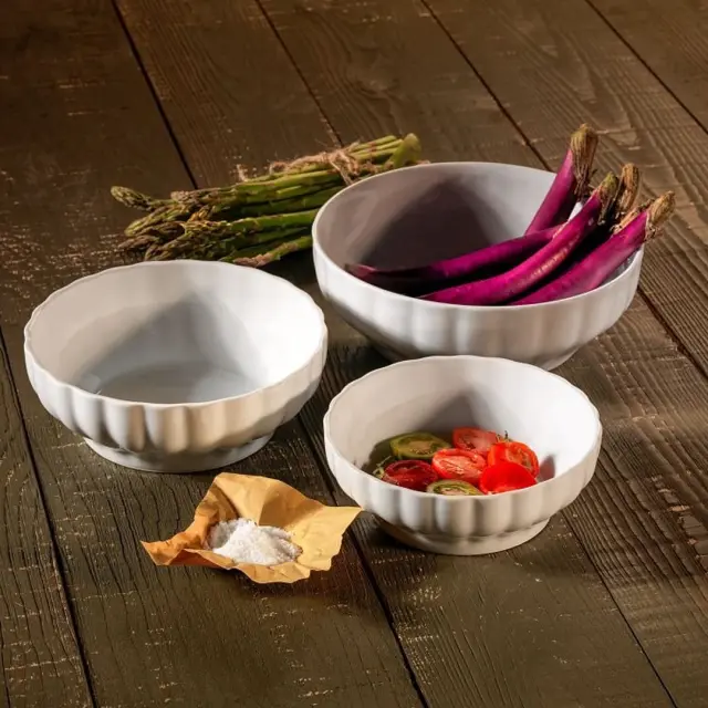 Bela skleda iz kakovostnega porcelana s premerom 17 cm. Kolekcija Trento blagovne znamke Tognana je sestavljena iz skled za solate iz rebrastega porcelana, odpornega materiala, primernega za intenzivno uporabo in pogosto pranje v pomivalnem stroju. Ta linija je navdihnjena z vzdušjem tradicionalnih kuhinj in združuje praktičnost, moč in belino dragocenega porcelana.