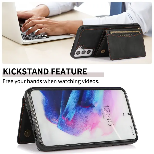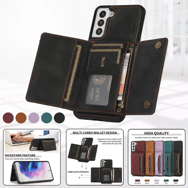 Funkcionalna zasnova: Trikratna zasnova ima več rež za kartice za priročno shranjevanje vaših osnovnih kartic in gotovine. Natančni izrezi omogočajo enostaven dostop do vseh vrat, gumbov in funkcij vašega Samsunga.