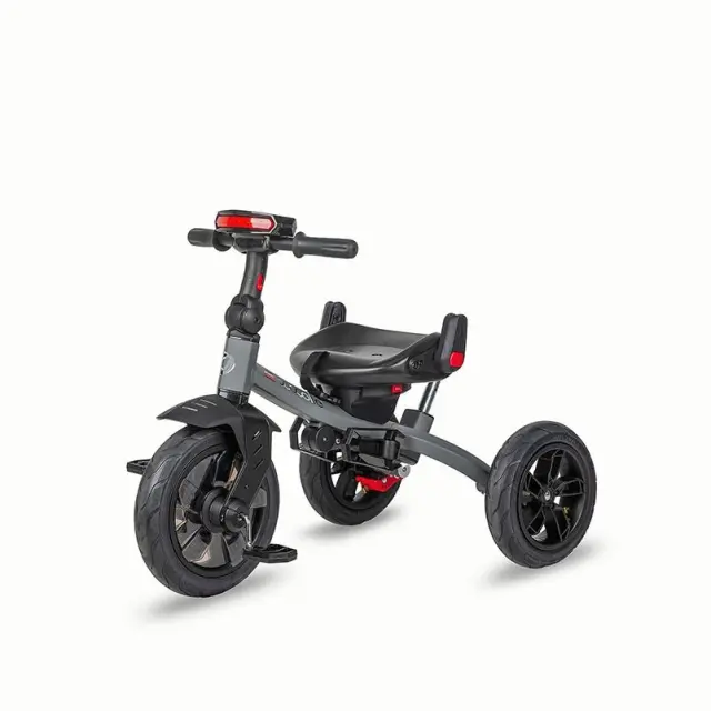 Tricikel je izdelan iz kakovostnih materialov, trpežen in opremljen z množico dodatkov, namenjenih temu, da se malček počuti dobro, hkrati pa staršem daje udobje pri uporabi