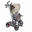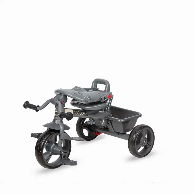 Čeprav se na prvi pogled zdi, da je tricikel Primo elementaren izdelek, boste videli, da gre pravzaprav za večnamenski izdelek, ki je prilagojen potrebam sodobnega otroka. Če bo otrok v prvi fazi tricikel uporabljal kot hibridni voziček, ki ga bo lahko potisnil le starš, bo pri razvoju imel koristi od več prednosti tega izdelka: opora za noge, mehak in udoben vrtljiv sedež, spanje, Nadstrešek z UV zaščito, nedrseči pedali, nagibno krmilo, košara za igrače in držalo za skodelico. Hkrati so kolesa iz pene EVA lahka in trpežna, kar jih omogoča brezskrbno uporabo na kakršnem koli terenu in vam obljublja neomejen čas igranja na prostem.