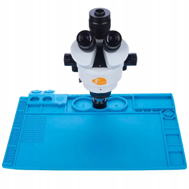 Profesionalni komplet za mikroskop Mercury Pro s kamero za mikroskop in silikonsko podlogo, idealen za elektronike in draguljarje. Vključuje trinokularni mikroskop z razponom povečave 7x-45x, visokokakovostno mikroskopsko kamero Crux PRO KMCP-HDMI-USB 5mp Plantes serije PRO in antistatično toplotno odporno silikonsko podlogo z magnetnim delom za boljšo organizacijo dela.