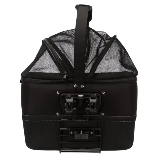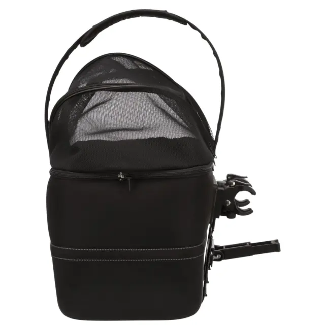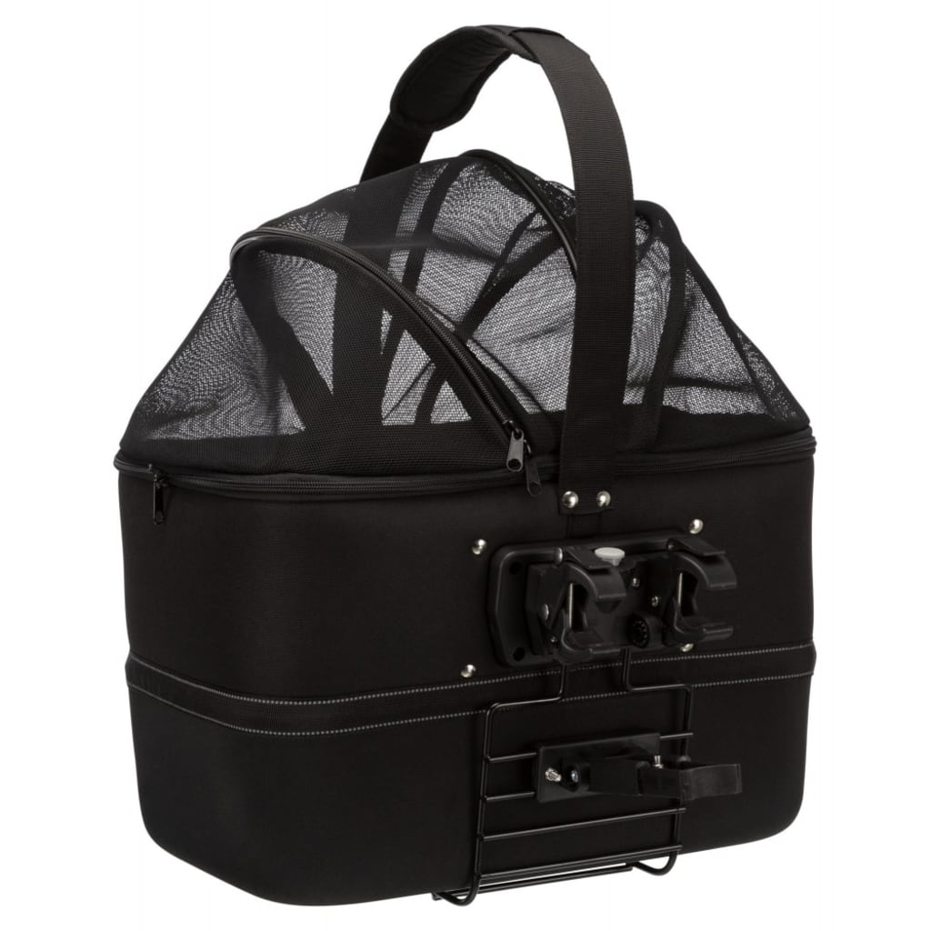 Košaro se lahko na krmilo enostavno pritrdi s pripenjalom za hitro pripenjanje. Lahko se uporablja tudi kot prenosna torba, saj ima ročaje. Streha z mrežo zagotavlja varnost in dobro zračenje, pokrov pa ščiti pred dežjem in vetrom. Vgrajen kratek povodec se lahko uporablja za privez, da vaš ljubljenček ne bo skočil iz košare. Uporabljeni materiali zagotavljajo, da košara ohranja svojo obliko, vaš hišni ljubljenček pa se bo na odstranljivi blazini počutil zelo udobno.