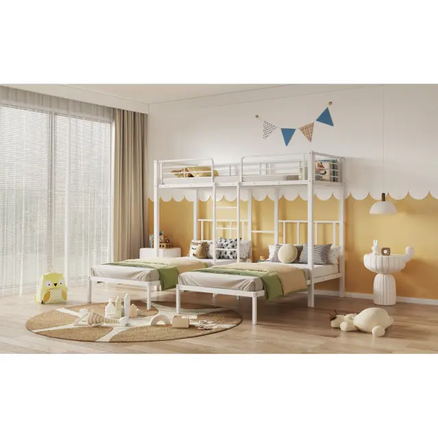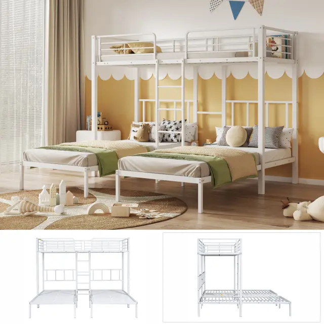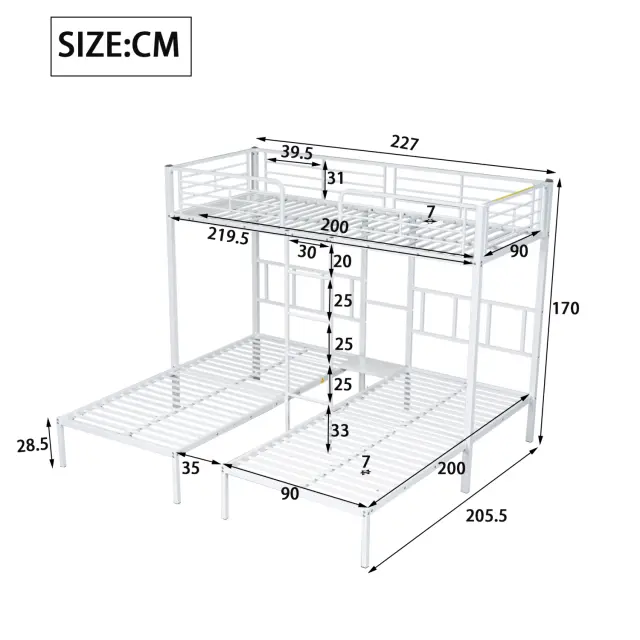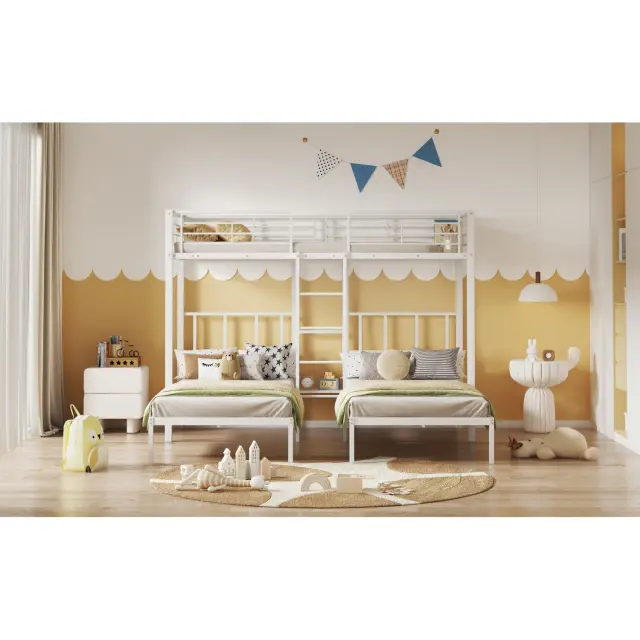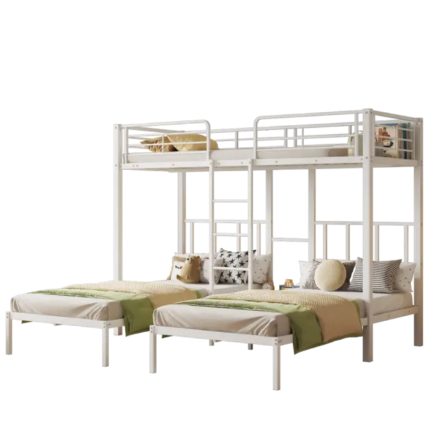 Trojna pogradna postelja z lestvijo, bela 90x200 cm