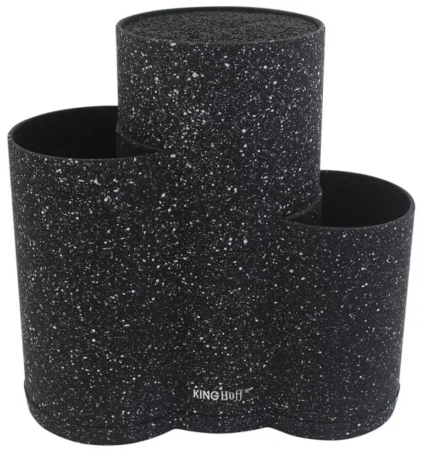 Trojno stojalo za nože in kuhinjske pripomočke. Blok je napolnjen s plastičnimi palicami. Zahvaljujoč temu lahko shranjujete nože različnih debelin, širin in dolžin. Preostala 2 predelka lahko prosto uporabljate za kuhinjske pripomočke in pripomočke.