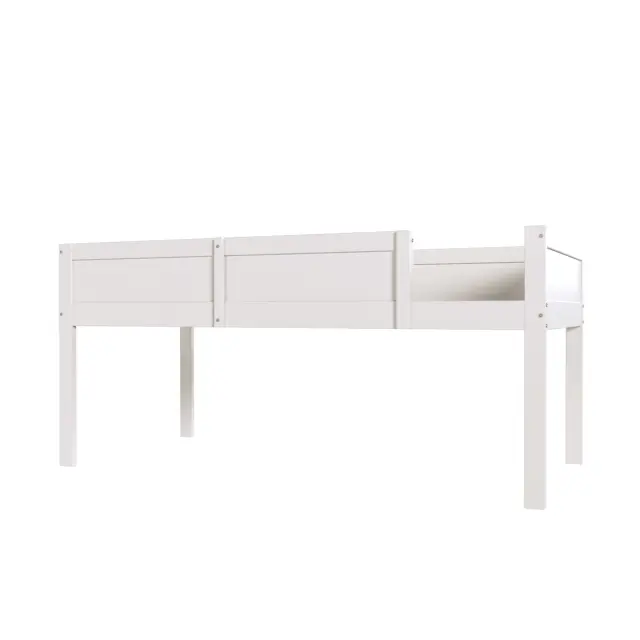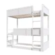Troposteljna postelja 90x200 cm, masiven les, pograd z ograjo, bela