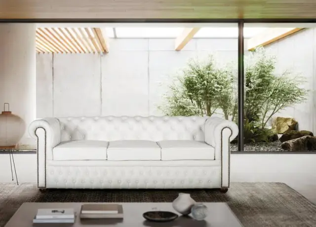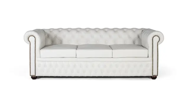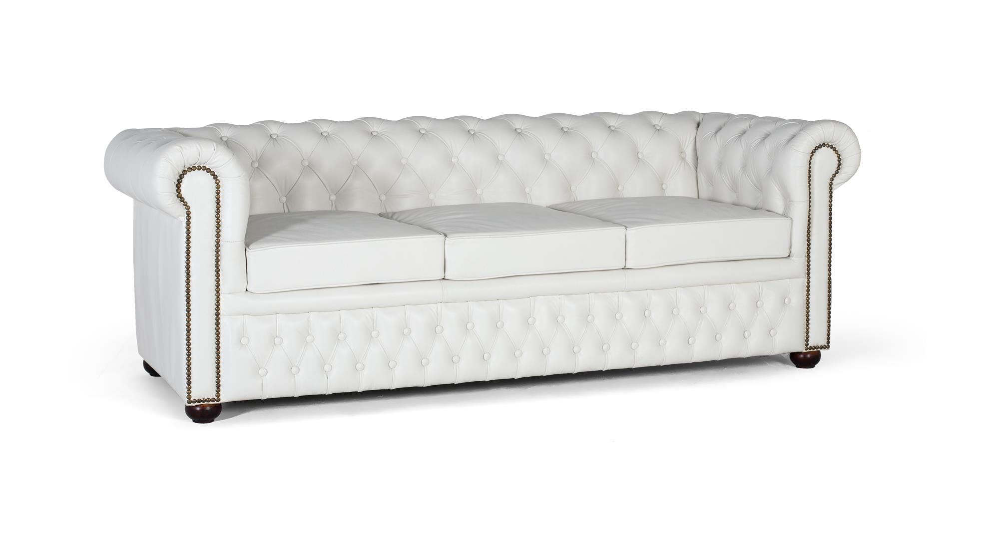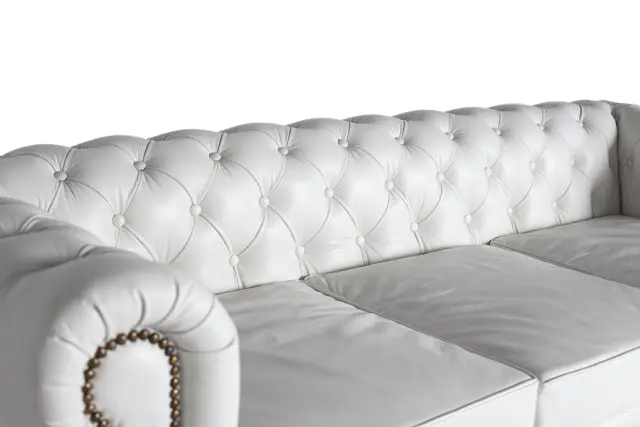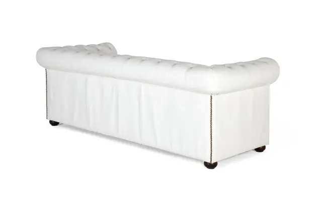 Trosed Chester kavč, oblazinjen v belem naravnem usnju