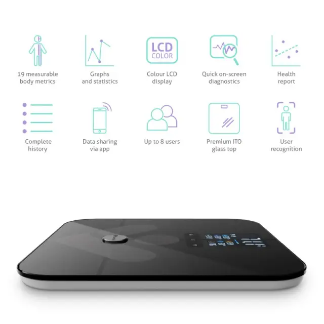 Spoznavanje lastnega telesa nikoli ni bilo lažje. 19 telesnih indeksov, katerih celovito analizo boste videli v aplikaciji, bo razkrilo vse potrebno.